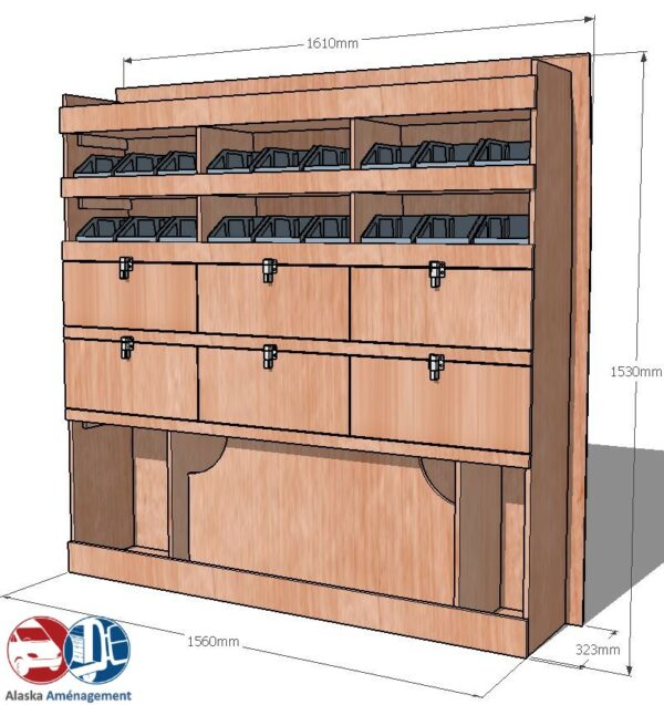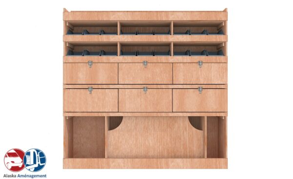Structure Renforcée et Protectrice : Le meuble intègre un fond arrière de 8 mm qui renforce sa structure et le solidarise. Un avantage économique direct pour vous : il protège efficacement la carrosserie de votre fourgon, vous dispensant d’installer un habillage latéral supplémentaire !