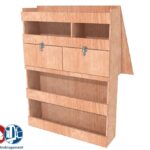 Ce meuble de rangement KRD102-N (pour le latéral « Droite » de votre véhicule) offre une solution de stockage polyvalente et fonctionnelle avec cinq niveaux de stockage. Il comprend des étagères pour bacs à bec et des clapets basculants. Une étagère supérieure est conçue pour les objets longs. Son fond arrière intégré assure la rigidité et protège la carrosserie du véhicule, évitant un habillage supplémentaire. Le meuble est disponible en contreplaqué brut ou filmé.