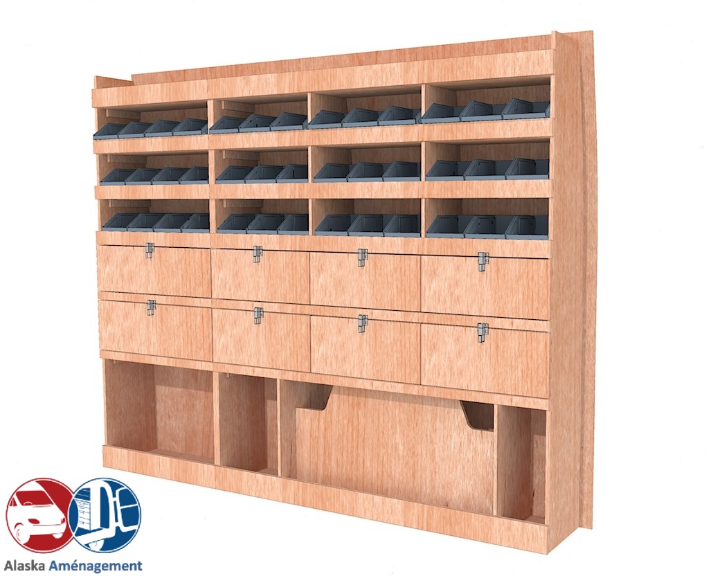 • Gain de place : Deux rangées de clapets, parfait pour stocker votre outillage et vos consommables de valeur à l’abri des chocs et des regards.
