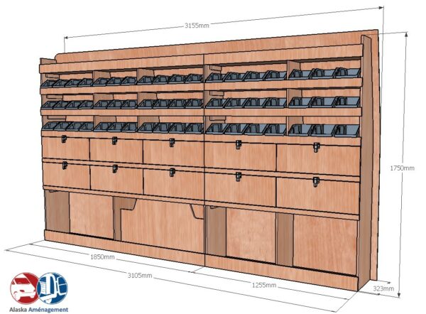 Structure Renforcée et Protectrice : Le meuble intègre un fond arrière de 8 mm qui renforce sa structure et le solidarise. Un avantage économique direct pour vous : il protège efficacement la carrosserie de votre fourgon, vous dispensant d’installer un habillage latéral supplémentaire !