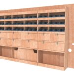 Ce meuble de rangement KRD102-N (pour le latéral « Droite » de votre véhicule) offre une solution de stockage polyvalente et fonctionnelle avec sept niveaux de stockage. Il comprend des étagères pour bacs à bec et des clapets basculants. Une étagère supérieure est conçue pour les objets longs. Son fond arrière intégré assure la rigidité et protège la carrosserie du véhicule, évitant un habillage supplémentaire. Le meuble est disponible en contreplaqué brut ou filmé.