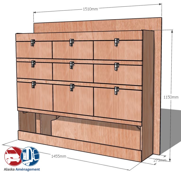 • Structure Renforcée et Protectrice : Le meuble intègre un fond arrière de 8 mm qui renforce sa structure et le solidarise. Un avantage économique direct pour vous : il protège efficacement la carrosserie de votre fourgon, vous dispensant d’installer un habillage latéral supplémentaire !
