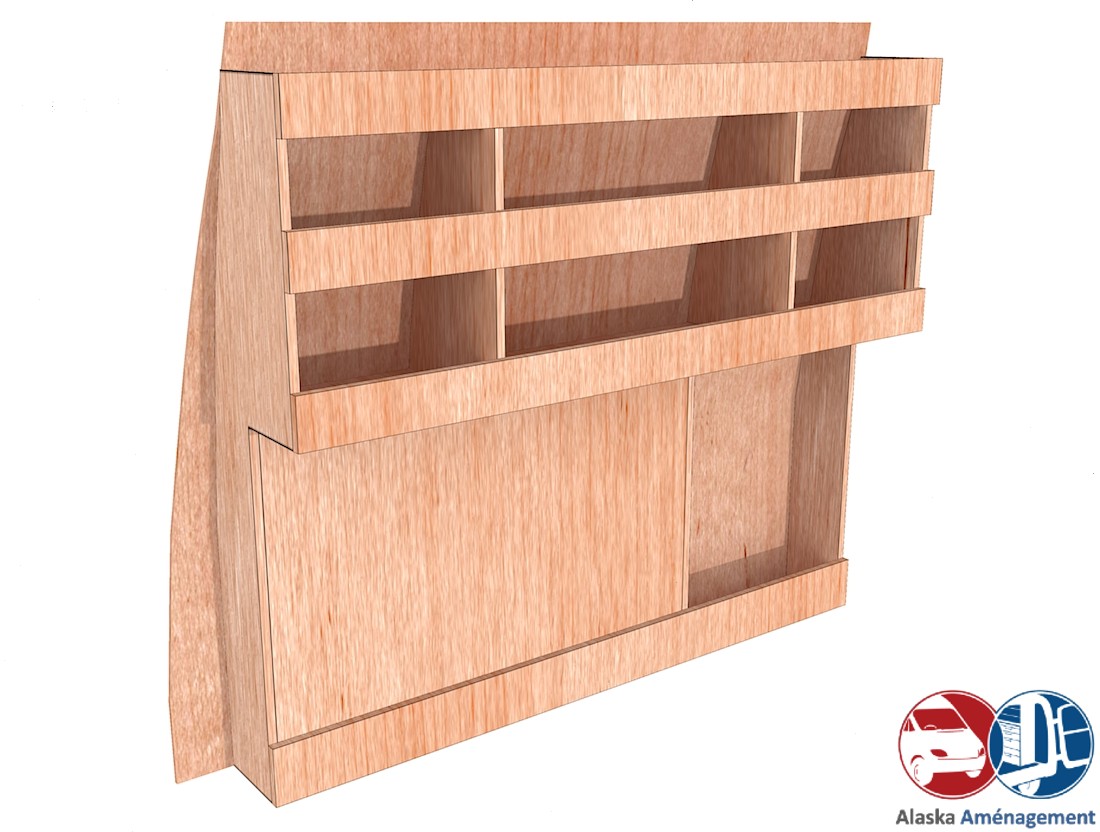 Ce meuble de rangement KRG-DC-N (pour le latéral « Gauche » de votre véhicule) offre une solution de stockage polyvalente et fonctionnelle avec trois niveaux de stockage. Il comprend des étagères pour stocker divers équipements et matériels. Une étagère supérieure est conçue pour les objets longs. Son fond arrière intégré et sa protection de passage de roue assurent la rigidité et protège la carrosserie du véhicule, évitant un habillage supplémentaire. Le meuble est disponible en contreplaqué brut ou filmé. |