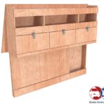Ce meuble de rangement KRG-DC002-N (pour le latéral « Gauche » de votre véhicule) offre une solution de stockage polyvalente et fonctionnelle avec trois niveaux de stockage. Il comprend des clapets basculants. Une étagère supérieure est conçue pour les objets longs. Son fond arrière intégré et sa protection de passage de roue assurent la rigidité et protège la carrosserie du véhicule, évitant un habillage supplémentaire. Le meuble est disponible en contreplaqué brut ou filmé.