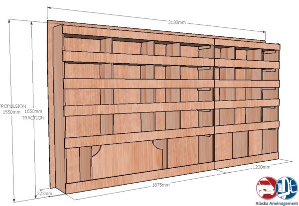 • Structure Renforcée et Protectrice : Le meuble intègre un fond arrière de 8 mm qui renforce sa structure et le solidarise. Un avantage économique direct pour vous : il protège efficacement la carrosserie de votre fourgon, vous dispensant d’installer un habillage latéral supplémentaire !