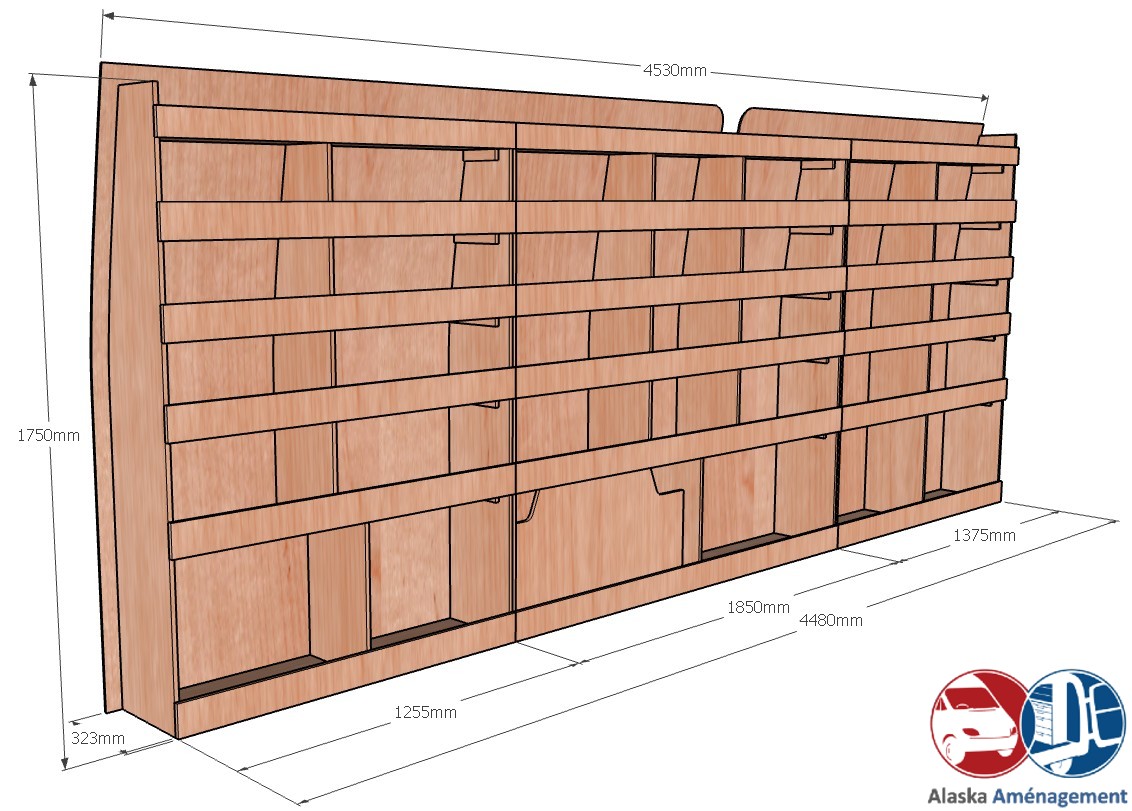 Ce meuble de rangement KRG-N (pour le latéral « Gauche » de votre véhicule) offre une solution de stockage polyvalente et fonctionnelle avec six niveaux de stockage. Il comprend des étagères pour stocker divers équipements et matériels. Une étagère supérieure est conçue pour les objets longs. Son fond arrière intégré assure la rigidité et protège la carrosserie du véhicule, évitant un habillage supplémentaire. Le meuble est disponible en contreplaqué brut ou filmé.