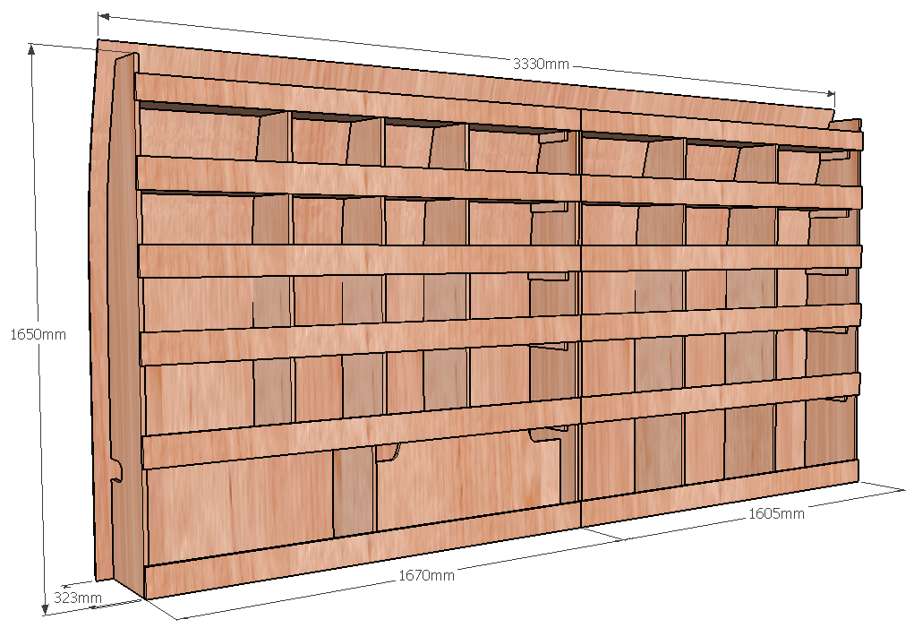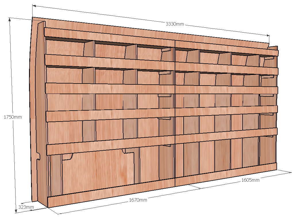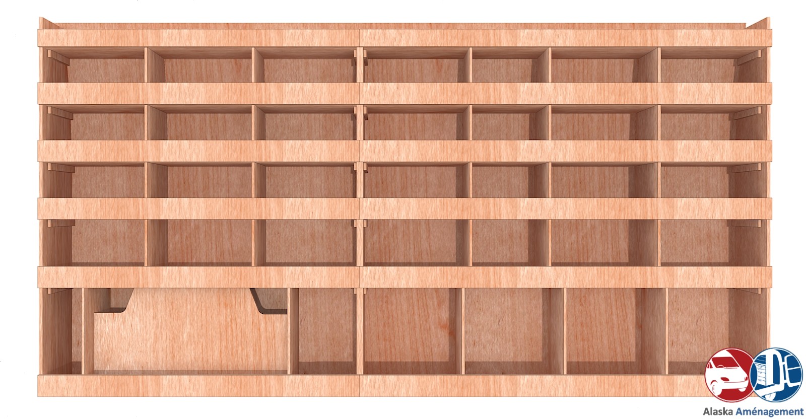 Ce meuble de rangement KRG-N (pour le latéral « Gauche » de votre véhicule) offre une solution de stockage polyvalente et fonctionnelle avec six niveaux de stockage. Il comprend des étagères pour stocker divers équipements et matériels. Une étagère supérieure est conçue pour les objets longs. Son fond arrière intégré assure la rigidité et protège la carrosserie du véhicule, évitant un habillage supplémentaire. Le meuble est disponible en contreplaqué brut ou filmé. |