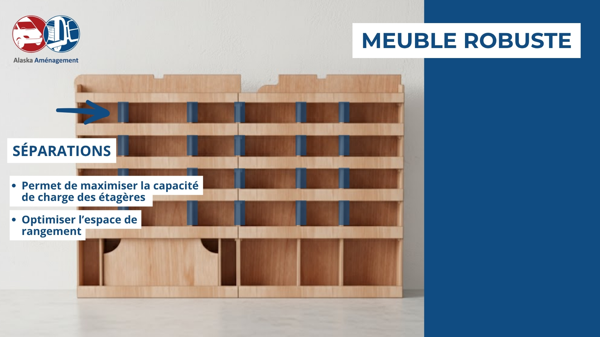 Nous savons que les artisans ont besoin d’équipements robustes qui résistent à des manipulations intensives. C'est pourquoi tous nos aménagements sont conçus pour être solides et pratiques avant tout. Les matériaux (contreplaqué okoumé, visserie adaptée… ) et les techniques que nous employons renforcent leur robustesse.