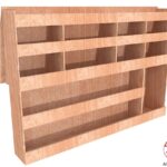 Ce meuble de rangement KRG-N (pour le latéral « Gauche » de votre véhicule) offre une solution de stockage polyvalente et fonctionnelle avec cinq niveaux de stockage. Il comprend des étagères pour stocker divers équipements et matériels. Une étagère supérieure est conçue pour les objets longs. Son fond arrière intégré assure la rigidité et protège la carrosserie du véhicule, évitant un habillage supplémentaire. Le meuble est disponible en contreplaqué brut ou filmé.