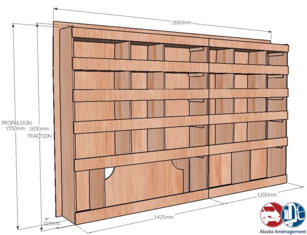 • Structure Renforcée et Protectrice : Le meuble intègre un fond arrière de 8 mm qui renforce sa structure et le solidarise. Un avantage économique direct pour vous : il protège efficacement la carrosserie de votre fourgon, vous dispensant d’installer un habillage latéral supplémentaire !