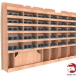Ce meuble de rangement KRG001-N (pour le latéral « Gauche » de votre véhicule) offre une solution de stockage polyvalente et fonctionnelle avec sept niveaux de stockage. Il comprend des étagères pour bacs à bec pour ranger toutes vos petites pièces. Une étagère supérieure est conçue pour les objets longs. Son fond arrière intégré assure la rigidité et protège la carrosserie du véhicule, évitant un habillage supplémentaire. Le meuble est disponible en contreplaqué brut ou filmé.