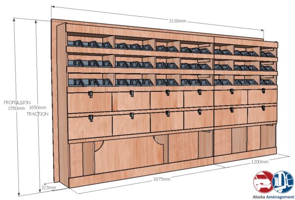 Structure Renforcée et Protectrice : Le meuble intègre un fond arrière de 8 mm qui renforce sa structure et le solidarise. Un avantage économique direct pour vous : il protège efficacement la carrosserie de votre fourgon, vous dispensant d’installer un habillage latéral supplémentaire !