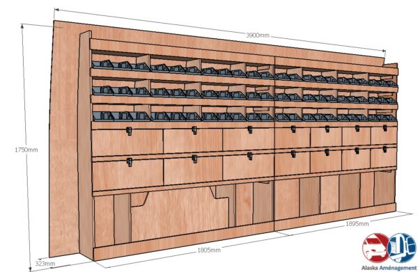 Structure Renforcée et Protectrice : Le meuble intègre un fond arrière de 8 mm qui renforce sa structure et le solidarise. Un avantage économique direct pour vous : il protège efficacement la carrosserie de votre fourgon, vous dispensant d’installer un habillage latéral supplémentaire !