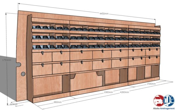 Gain de place : Deux rangées de clapets, parfait pour stocker votre outillage et vos consommables de valeur à l’abri des chocs et des regards.