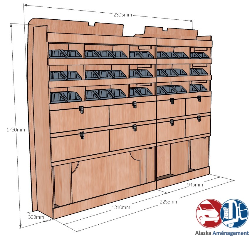 • Structure Renforcée et Protectrice : Le meuble intègre un fond arrière de 8 mm qui renforce sa structure et le solidarise. Un avantage économique direct pour vous : il protège efficacement la carrosserie de votre fourgon, vous dispensant d’installer un habillage latéral supplémentaire !