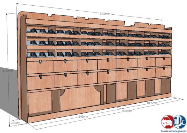 Structure Renforcée et Protectrice : Le meuble intègre un fond arrière de 8 mm qui renforce sa structure et le solidarise. Un avantage économique direct pour vous : il protège efficacement la carrosserie de votre fourgon, vous dispensant d’installer un habillage latéral supplémentaire !