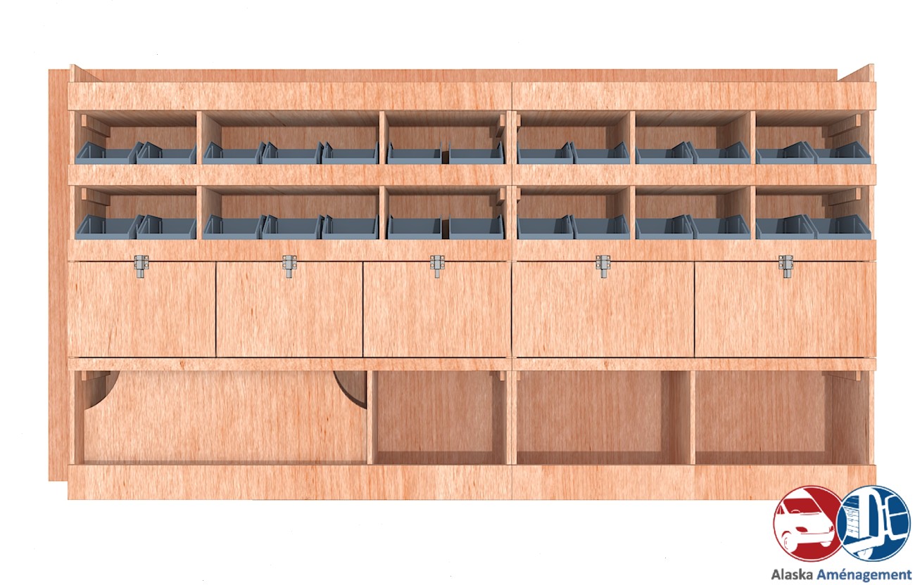 • Gain de place : Une rangée de clapets, parfait pour stocker votre outillage et vos consommables de valeur à l’abri des chocs et des regards.