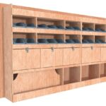 Ce meuble de rangement KRG002-N (pour le latéral « Gauche » de votre véhicule) offre une solution de stockage polyvalente et fonctionnelle avec cinq niveaux de stockage. Il comprend des étagères pour bacs à bec et des clapets basculants. Une étagère supérieure est conçue pour les objets longs. Son fond arrière intégré assure la rigidité et protège la carrosserie du véhicule, évitant un habillage supplémentaire. Le meuble est disponible en contreplaqué brut ou filmé.
