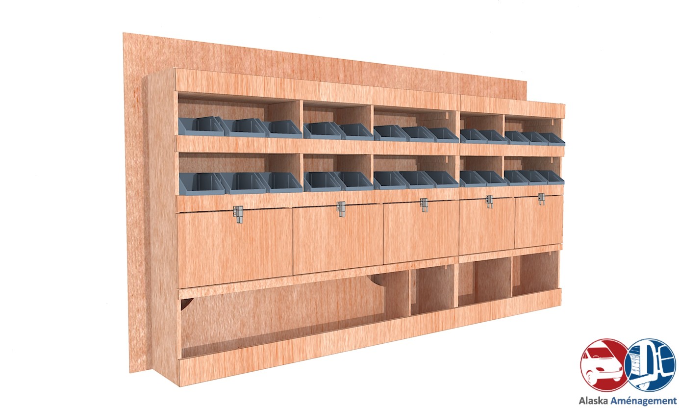 • Gain de place : Une rangée de clapets, parfait pour stocker votre outillage et vos consommables de valeur à l’abri des chocs et des regards.