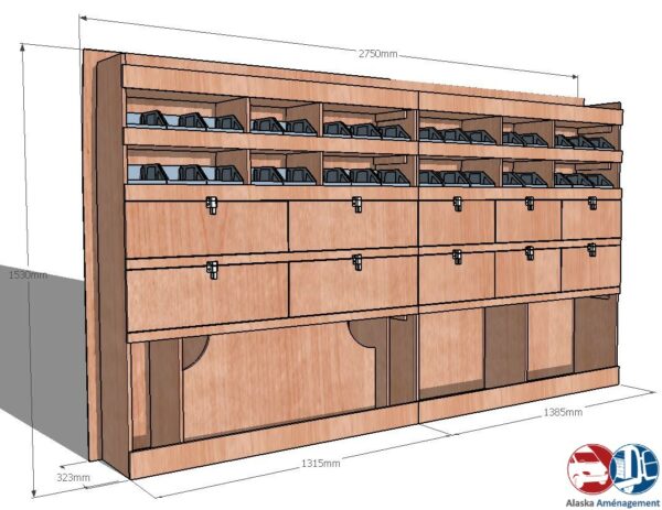 • Structure Renforcée et Protectrice : Le meuble intègre un fond arrière de 8 mm qui renforce sa structure et le solidarise. Un avantage économique direct pour vous : il protège efficacement la carrosserie de votre fourgon, vous dispensant d’installer un habillage latéral supplémentaire !
