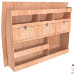 Ce meuble de rangement KRG002-N (pour le latéral « Gauche » de votre véhicule) offre une solution de stockage polyvalente et fonctionnelle avec cinq niveaux de stockage. Il comprend des étagères pour bacs à bec et des clapets basculants. Une étagère supérieure est conçue pour les objets longs. Son fond arrière intégré assure la rigidité et protège la carrosserie du véhicule, évitant un habillage supplémentaire. Le meuble est disponible en contreplaqué brut ou filmé. |