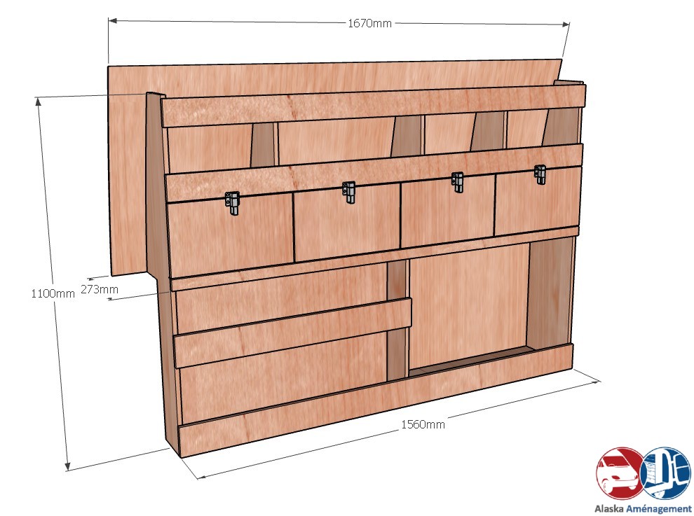 • Structure Renforcée et Protectrice : Le meuble intègre un fond arrière de 8 mm qui renforce sa structure et le solidarise. Un avantage économique direct pour vous : il protège efficacement la carrosserie de votre fourgonnette, vous dispensant d’installer un habillage latéral supplémentaire !