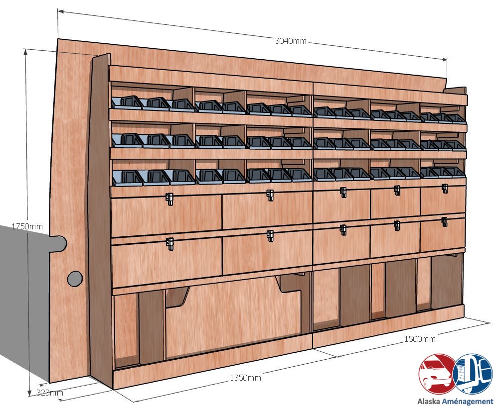 Ce meuble de rangement KRG002-N (pour le latéral « Gauche » de votre véhicule) offre une solution de stockage polyvalente et fonctionnelle avec sept niveaux de stockage. Il comprend des étagères pour bacs à bec et des clapets basculants. Une étagère supérieure est conçue pour les objets longs. Son fond arrière intégré assure la rigidité et protège la carrosserie du véhicule, évitant un habillage supplémentaire. Le meuble est disponible en contreplaqué brut ou filmé. |