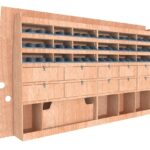 Ce meuble de rangement KRG002-N (pour le latéral « Gauche » de votre véhicule) offre une solution de stockage polyvalente et fonctionnelle avec sept niveaux de stockage. Il comprend des étagères pour bacs à bec et des clapets basculants. Une étagère supérieure est conçue pour les objets longs. Son fond arrière intégré assure la rigidité et protège la carrosserie du véhicule, évitant un habillage supplémentaire. Le meuble est disponible en contreplaqué brut ou filmé.
