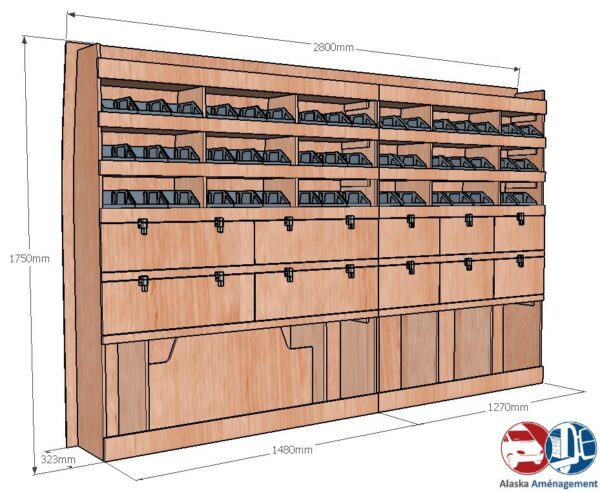 • Structure Renforcée et Protectrice : Le meuble intègre un fond arrière de 8 mm qui renforce sa structure et le solidarise. Un avantage économique direct pour vous : il protège efficacement la carrosserie de votre fourgon, vous dispensant d’installer un habillage latéral supplémentaire !