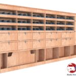 • Accès Immédiat à vos équipements :  Quatre niveaux d’étagères dont trois spécialement conçus pour accueillir des bacs à bec (nombre modulables). Finie la recherche de petites pièces !