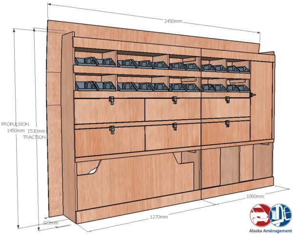 Structure Renforcée et Protectrice : Le meuble intègre un fond arrière de 8 mm qui renforce sa structure et le solidarise. Un avantage économique direct pour vous : il protège efficacement la carrosserie de votre fourgon, vous dispensant d’installer un habillage latéral supplémentaire !