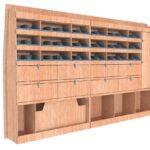 Ce meuble de rangement KRG003-N (pour le latéral « Gauche » de votre véhicule) offre une solution polyvalente avec sept niveaux de stockage fonctionnels. Il comprend des étagères pour bacs à bec, des clapets basculants et un placard. Une étagère supérieure est conçue pour les objets longs. Son fond arrière intégré assure la rigidité et protège la carrosserie du véhicule, évitant un habillage supplémentaire. Le meuble est disponible en contreplaqué brut ou filmé.