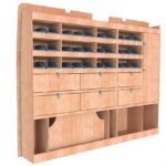 Ce meuble de rangement KRG003-N (pour le latéral « Gauche » de votre véhicule) offre une solution polyvalente avec sept niveaux de stockage fonctionnels. Il comprend des étagères pour bacs à bec, des clapets basculants et un placard. Une étagère supérieure est conçue pour les objets longs. Son fond arrière intégré assure la rigidité et protège la carrosserie du véhicule, évitant un habillage supplémentaire. Le meuble est disponible en contreplaqué brut ou filmé.