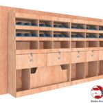 Ce meuble de rangement KRG004-N (pour le latéral « Gauche » de votre véhicule) offre une solution polyvalente et fonctionnelle avec six niveaux de stockage. Il comprend des étagères pour bacs à bec, une rangée de tiroirs. Une étagère supérieure est conçue pour les objets longs. Son fond arrière intégré assure la rigidité et protège la carrosserie du véhicule, évitant un habillage supplémentaire. Le meuble est disponible en contreplaqué brut ou filmé.