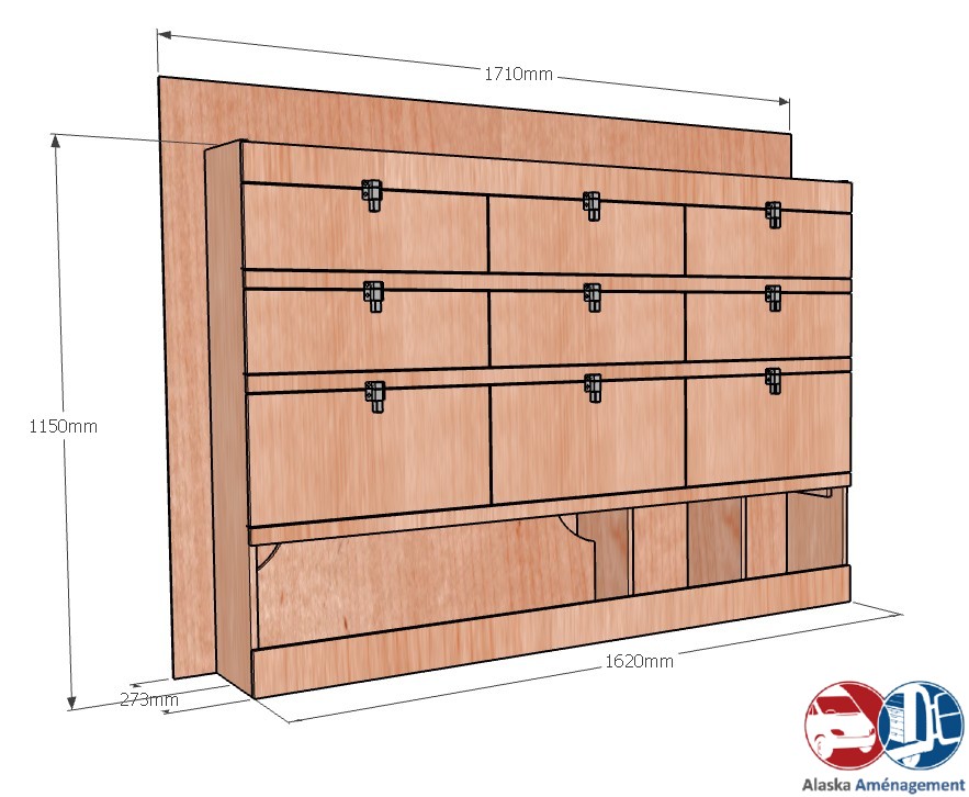 • Structure Renforcée et Protectrice : Le meuble intègre un fond arrière de 8 mm qui renforce sa structure et le solidarise. Un avantage économique direct pour vous : il protège efficacement la carrosserie de votre fourgon, vous dispensant d’installer un habillage latéral supplémentaire !