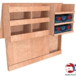 Ce meuble de rangement KRMG-DC-N (pour le latéral « Gauche » de votre véhicule) offre une solution de stockage polyvalente et fonctionnelle avec trois niveaux de stockage. Il comprend des étagères  et un module spécifique pour les mallettes d’électroportatif. Son fond arrière intégré et sa protection de passage de roue assurent la rigidité et protège la carrosserie du véhicule, évitant un habillage supplémentaire. Le meuble est disponible en contreplaqué brut ou filmé.