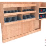 Ce meuble de rangement KRMG-DC001-N (pour le latéral « Gauche » de votre véhicule) offre une solution de stockage polyvalente et fonctionnelle avec trois niveaux de stockage. Il comprend des étagères équipés de bacs à becs et un module spécifique pour les mallettes d’électroportatif. Son fond arrière intégré et sa protection de passage de roue assurent la rigidité et protège la carrosserie du véhicule, évitant un habillage supplémentaire. Le meuble est disponible en contreplaqué brut ou filmé.