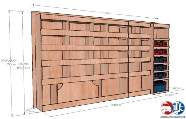 Structure Renforcée et Protectrice : Le meuble intègre un fond arrière de 8 mm qui renforce sa structure et le solidarise. Un avantage économique direct pour vous : il protège efficacement la carrosserie de votre fourgon, vous dispensant d’installer un habillage latéral supplémentaire !