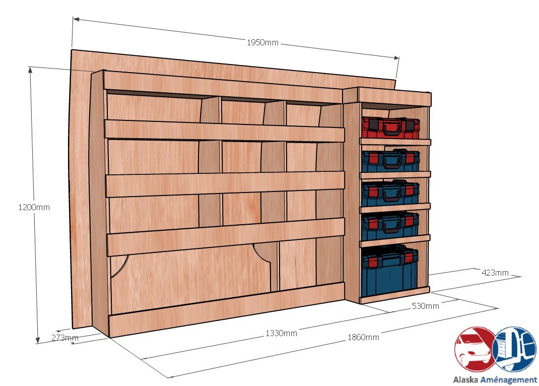 • Module pour Électroportatif : Un module vertical dédié au rangement de vos mallettes d’outils (type Festool Systainer, Makita, Facom etc.). Des rebords de maintien assurent une stabilité parfaite pendant le transport.