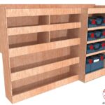 Ce meuble de rangement KRMG-N (pour le latéral « Gauche » de votre véhicule) offre une solution de stockage polyvalente et fonctionnelle avec cinq niveaux de stockage. Il comprend des étagères  et un module spécifique pour les mallettes d’électroportatif. Son fond arrière intégré assure la rigidité et protège la carrosserie du véhicule, évitant un habillage supplémentaire. Le meuble est disponible en contreplaqué brut ou filmé.
