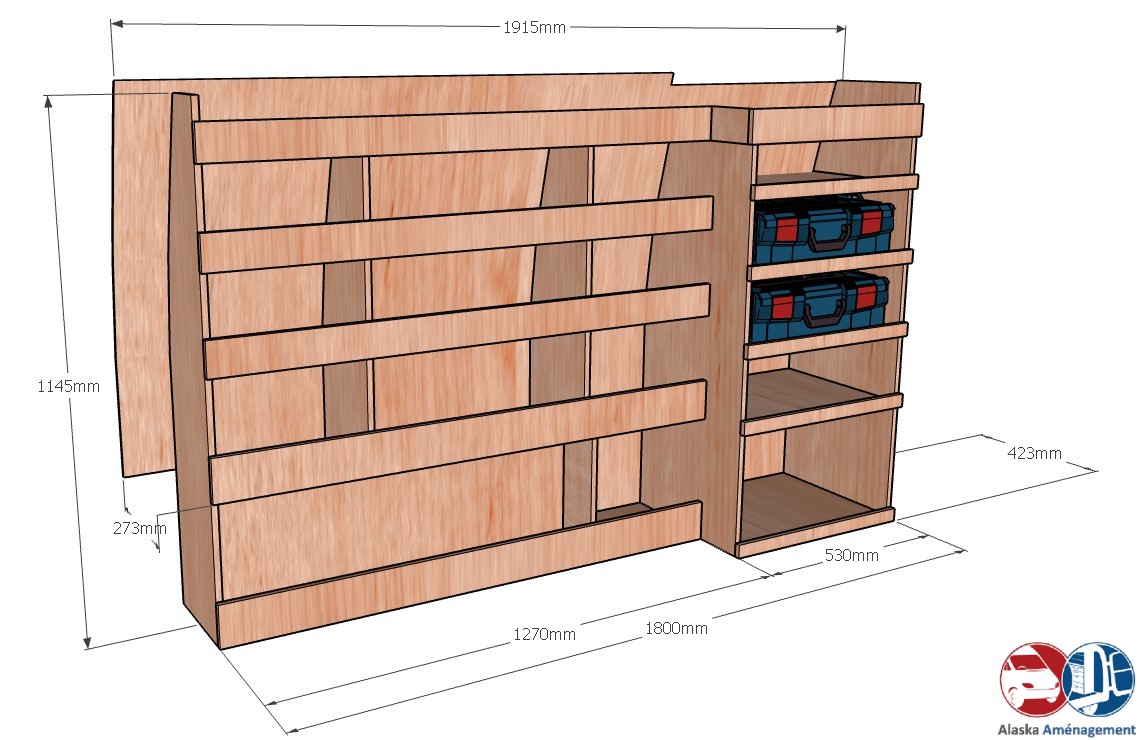 • Structure Renforcée et Protectrice : Le meuble intègre un fond arrière de 8 mm qui renforce sa structure et le solidarise. Un avantage économique direct pour vous : il protège efficacement la carrosserie de votre fourgonnette, vous dispensant d’installer un habillage latéral supplémentaire !