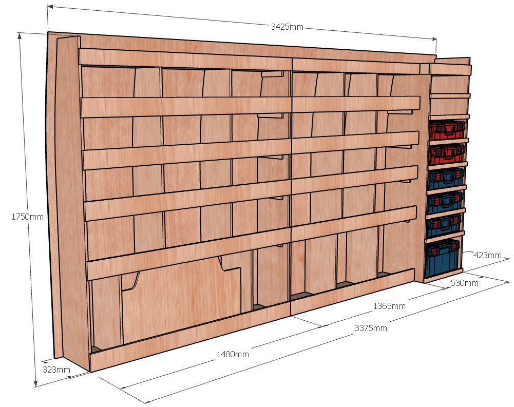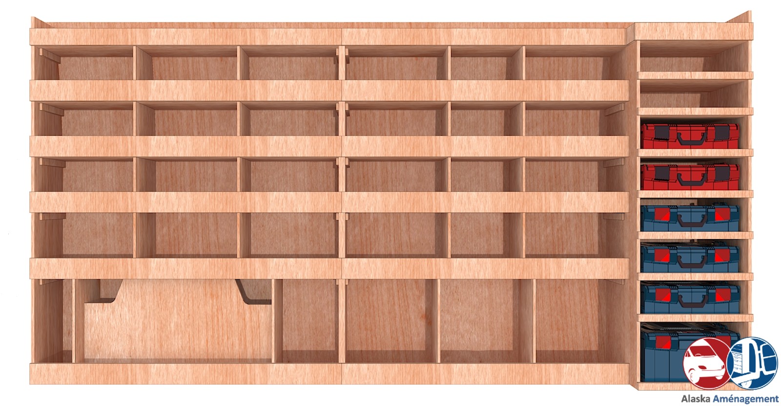 Ce meuble de rangement KRMG-N (pour le latéral « Gauche » de votre véhicule) offre une solution de stockage polyvalente et fonctionnelle avec six niveaux de stockage. Il comprend des étagères et un module spécifique pour les mallettes d’électroportatif. Une étagère supérieure est conçue pour les objets longs. Son fond arrière intégré assure la rigidité et protège la carrosserie du véhicule, évitant un habillage supplémentaire. Le meuble est disponible en contreplaqué brut ou filmé. |