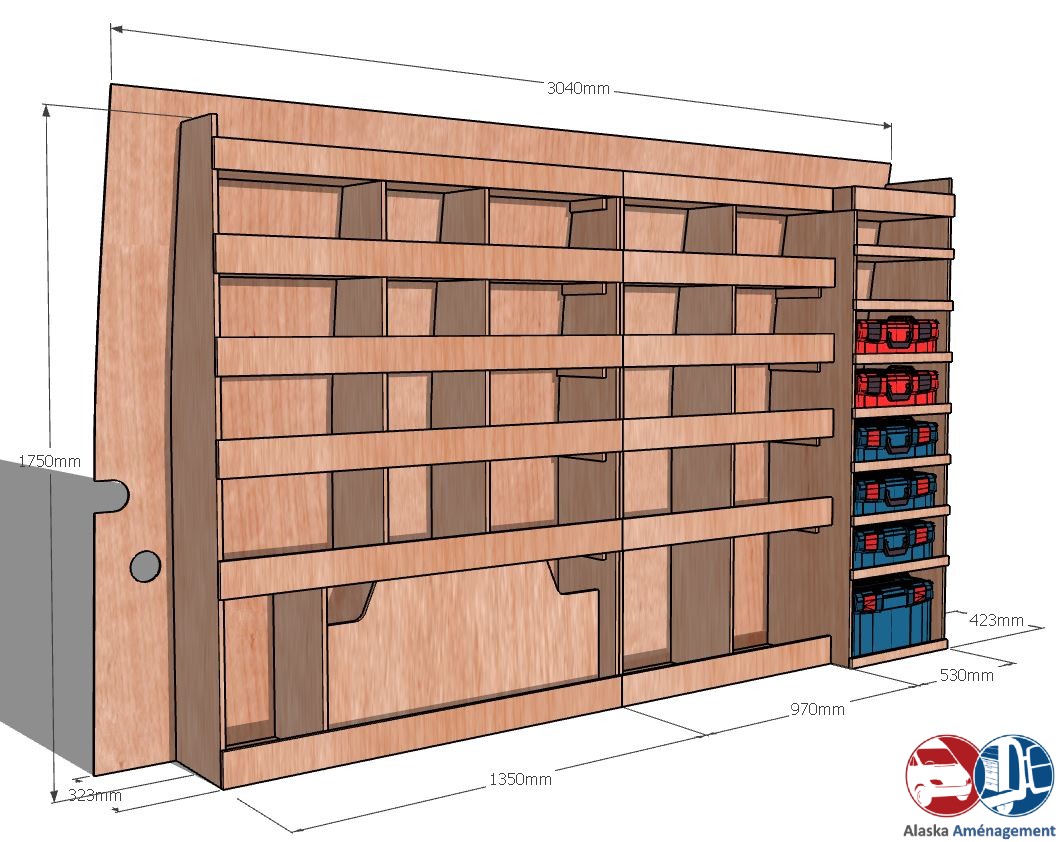 Ce meuble de rangement KRMG-N (pour le latéral « Gauche » de votre véhicule) offre une solution de stockage polyvalente et fonctionnelle avec six niveaux de stockage. Il comprend des étagères et un module spécifique pour les mallettes d’électroportatif. Une étagère supérieure est conçue pour les objets longs. Son fond arrière intégré assure la rigidité et protège la carrosserie du véhicule, évitant un habillage supplémentaire. Le meuble est disponible en contreplaqué brut ou filmé. |