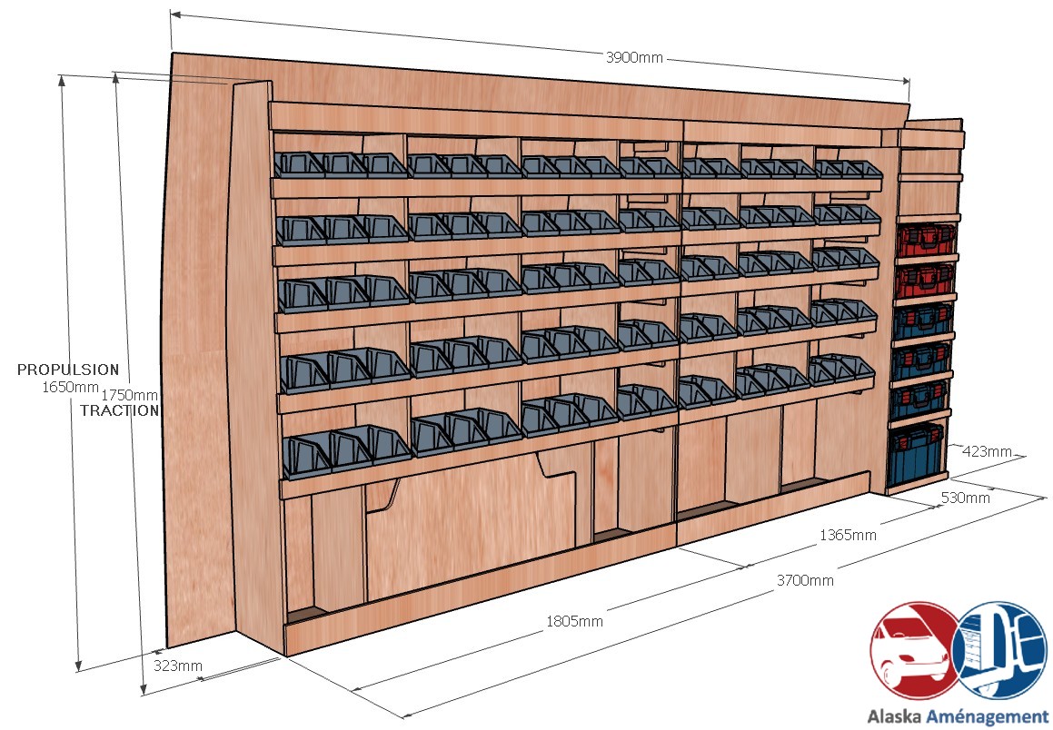 Ce meuble de rangement KRMG001-N (pour le latéral « Gauche » de votre véhicule) offre une solution de stockage polyvalente et fonctionnelle avec sept niveaux de stockage. Il comprend des étagères pour bacs à bec et un module spécifique pour les mallettes d’électroportatif. Une étagère supérieure est conçue pour les objets longs. Son fond arrière intégré assure la rigidité et protège la carrosserie du véhicule, évitant un habillage supplémentaire. Le meuble est disponible en contreplaqué brut ou filmé. |