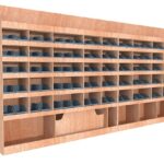 Ce meuble de rangement KRMG001-N (pour le latéral « Gauche » de votre véhicule) offre une solution de stockage polyvalente et fonctionnelle avec sept niveaux de stockage. Il comprend des étagères pour bacs à bec et un module spécifique pour les mallettes d’électroportatif. Une étagère supérieure est conçue pour les objets longs. Son fond arrière intégré assure la rigidité et protège la carrosserie du véhicule, évitant un habillage supplémentaire. Le meuble est disponible en contreplaqué brut ou filmé. |