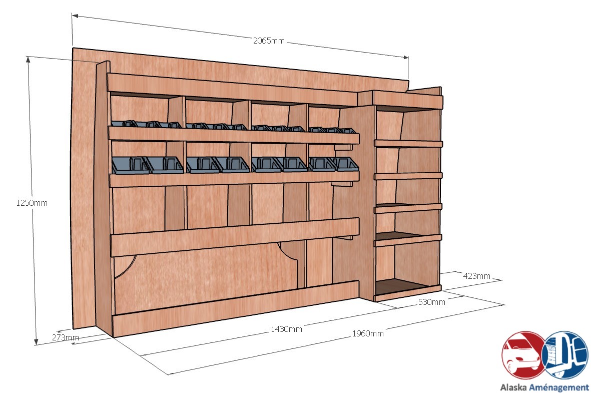 Ce meuble de rangement KRMG001-N (pour le latéral « Gauche » de votre véhicule) offre une solution de stockage polyvalente et fonctionnelle avec cinq niveaux de stockage. Il comprend des étagères pour bacs à bec et un module spécifique pour les mallettes d’électroportatif. Une étagère supérieure est conçue pour les objets longs. Son fond arrière intégré assure la rigidité et protège la carrosserie du véhicule, évitant un habillage supplémentaire. Le meuble est disponible en contreplaqué brut ou filmé. |