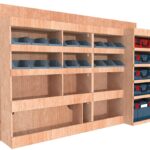 Ce meuble de rangement KRMG001-N (pour le latéral « Gauche » de votre véhicule) offre une solution de stockage polyvalente et fonctionnelle avec cinq niveaux de stockage. Il comprend des étagères pour bacs à bec  et un module spécifique pour les mallettes d’électroportatif. Une étagère supérieure est conçue pour les objets longs. Son fond arrière intégré assure la rigidité et protège la carrosserie du véhicule, évitant un habillage supplémentaire. Le meuble est disponible en contreplaqué brut ou filmé.