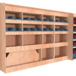 Ce meuble de rangement KRMG001-N (pour le latéral « Gauche » de votre véhicule) offre une solution de stockage polyvalente et fonctionnelle avec cinq niveaux de stockage. Il comprend des étagères pour bacs à bec  et un module spécifique pour les mallettes d’électroportatif. Une étagère supérieure est conçue pour les objets longs. Son fond arrière intégré assure la rigidité et protège la carrosserie du véhicule, évitant un habillage supplémentaire. Le meuble est disponible en contreplaqué brut ou filmé.