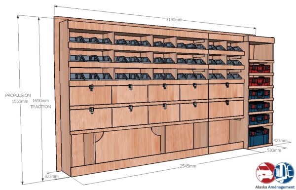Dimensions de votre meuble: (Propulsion) L.3075mm x H.1550mm x P.323mm