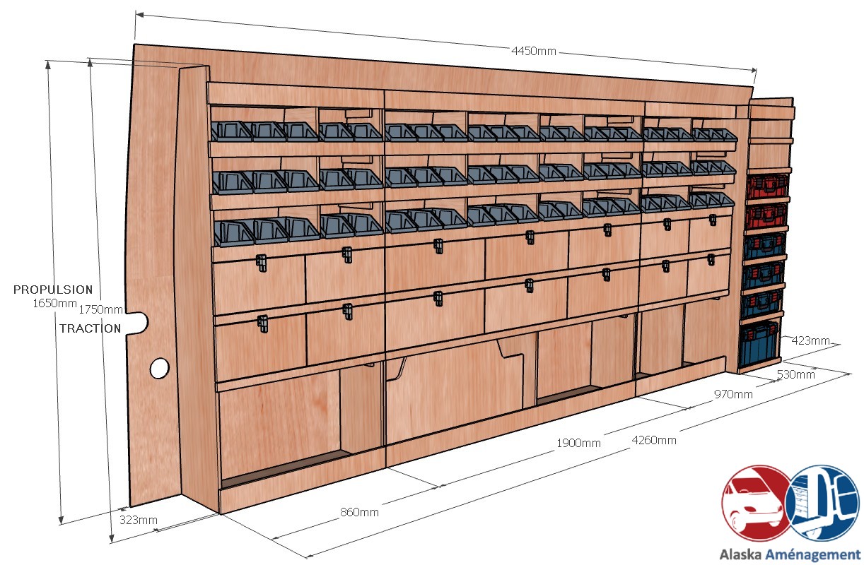 • Structure Renforcée et Protectrice : Le meuble intègre un fond arrière de 8 mm qui renforce sa structure et le solidarise. Un avantage économique direct pour vous : il protège efficacement la carrosserie de votre fourgon, vous dispensant d’installer un habillage latéral supplémentaire !